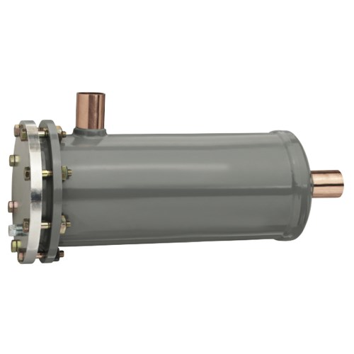 1-1/8" ODF Liquid Line Replaceable Core Filter Drier, 4.75" Diameter, 48 Cu. In. Desiccant Volume, 64 Sq. Inch Filter Area, 9.5" Length, 1/4" Female Pipe Connection in the Flange Plate and Pipe Plug, with Tube Construction and Pressure Tap